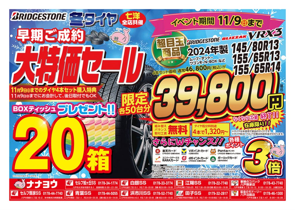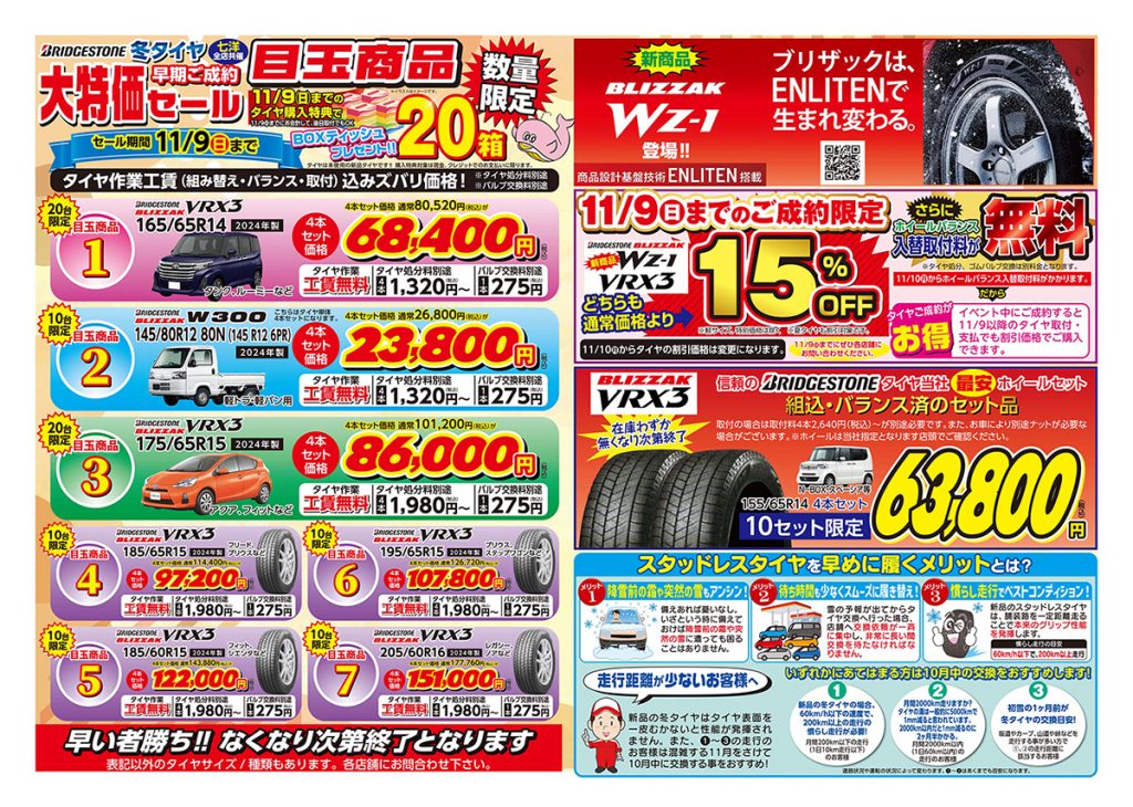 11/9(日)まで、冬タイヤ早期ご成約大特価セール開催!