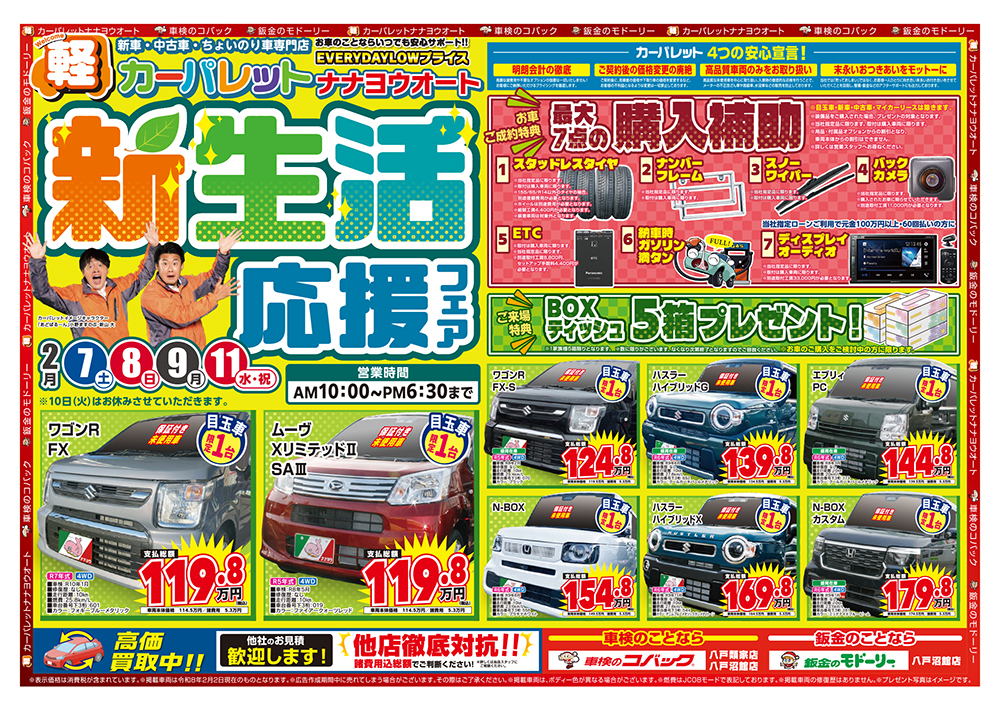 カーパレットナナヨウオート 新生活応援フェア 2月7日(土)〜11日(水・祝)