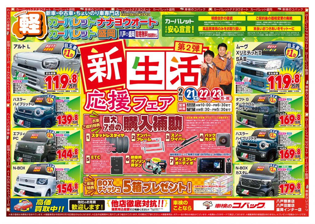 カーパレットナナヨウオート 新生活応援フェア第2弾 2月21日(土)〜23日(月・祝)