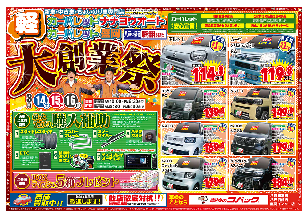 カーパレットナナヨウオート・盛岡 大創業祭 3月14日(土)〜16日(月)