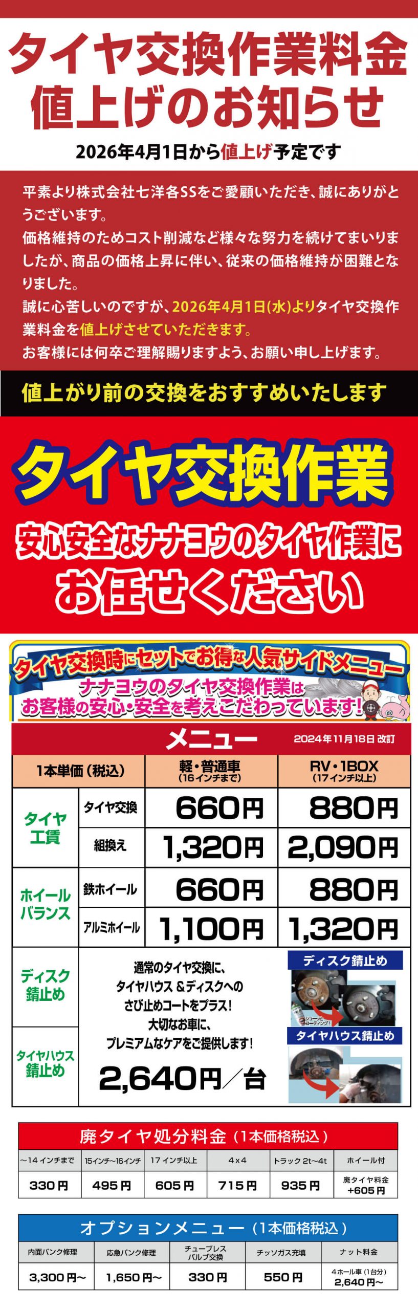 3月のキャンペーン タイヤ交換作業